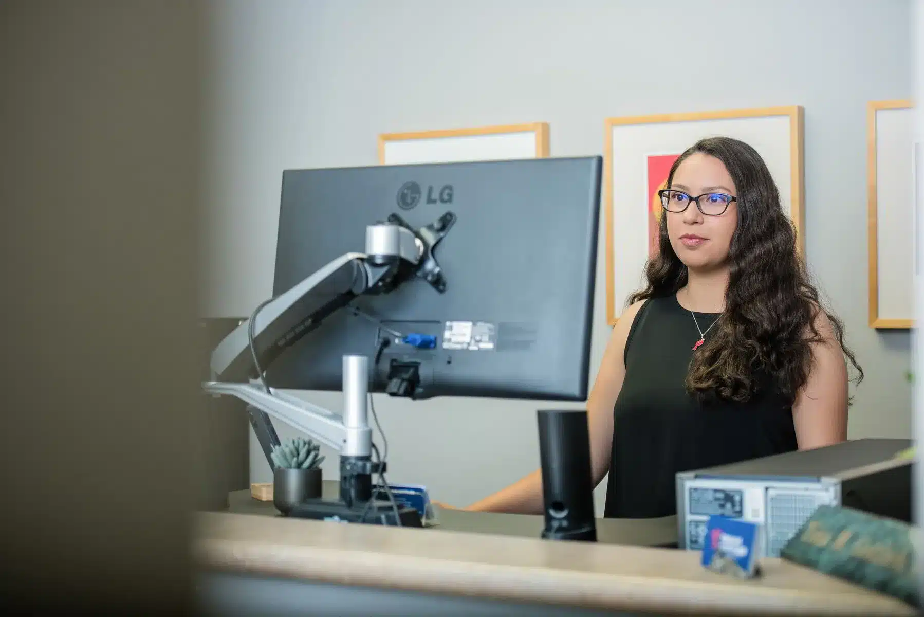 1. Your computer monitor should be at eye level and directly in front of you. We want to keep you in a neutral position while you work. If you are using a laptop, you should be using an adjustable laptop riser. They are only about $30 on Amazon. When using a laptop riser you should also use a secondary keyboard and mouse. Laptops are great for portability but not great for ergonomics.